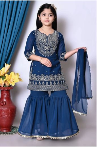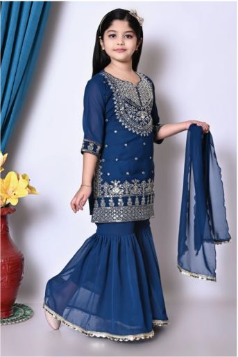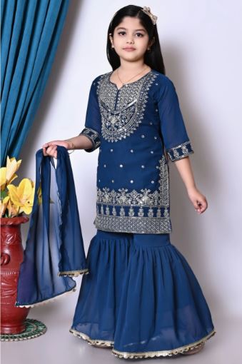 Green & Gold Embroidered Kurta with Sharara & Dupatta